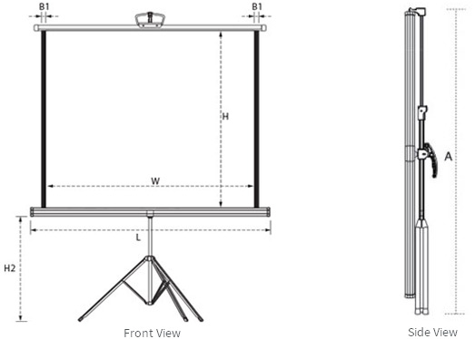 Fashionable black alloy case design, easy to carry and set up. Ideal for applications on the move : businesses, exhibitions, meetings, classroom, etc. Viewing area : 234cm x 234cm